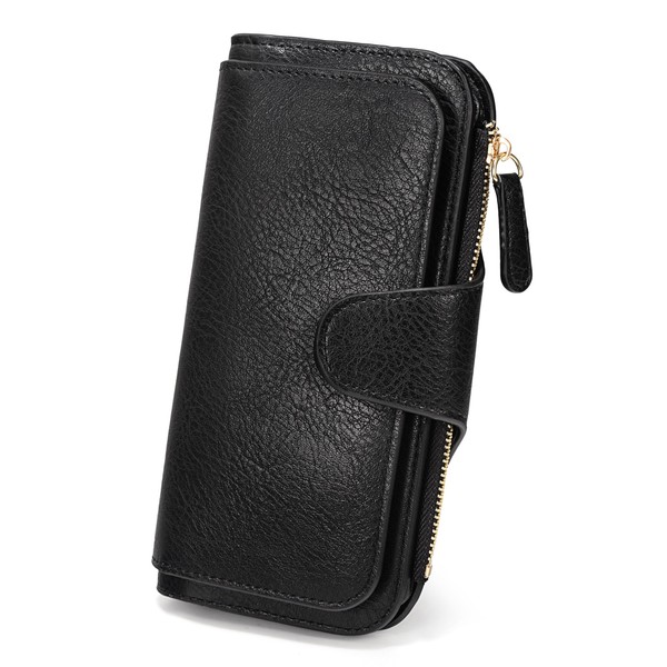 Uromee RFID Wallet for Women PU Leather Leaf Pendant Card Holder Phone Checkbook Organizer Zipper Coin Purse