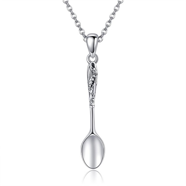 URONE Spoon Necklace 925 Sterling Silver Lily of the Valley Pendat Necklace Flower Jewellery Gifts for Women Girls