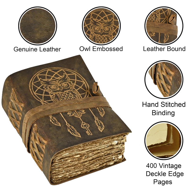 - Dream Catcher With Owl Leather Journal Antique Color Handmade Leather Journal Notebook Owl Diary 7x5 Inch