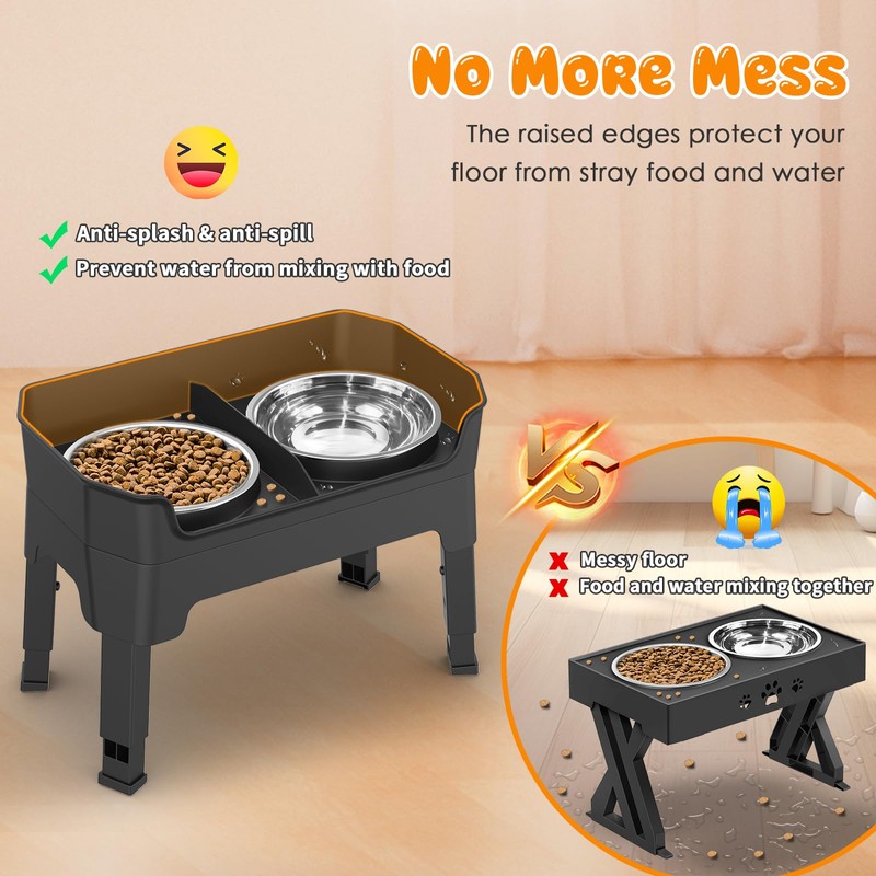 - PATENTED 3-IN-1 ELEVATED DOG BOWLS: This patented dog bowl set combines three functions in one. It not only has the adjustable lift function of a regular raised dog bowl, but also has an anti-spill function. What's more, it has a licking plate with a slow food function(U.S. Patent No.: 20250089675-A1)