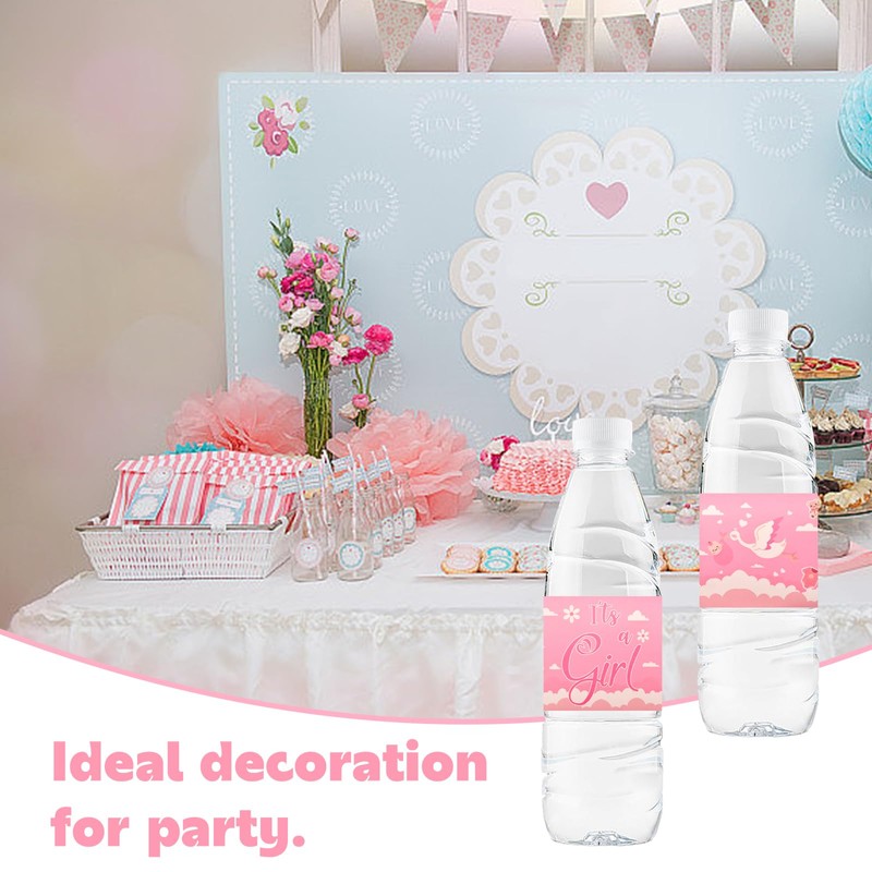 URROMA Baby Shower Water Bottle Labels, 48 Pcs Pink Water Bottle Wrappers Baby Gender Reveal Water Bottle Labels Stickers for Girls