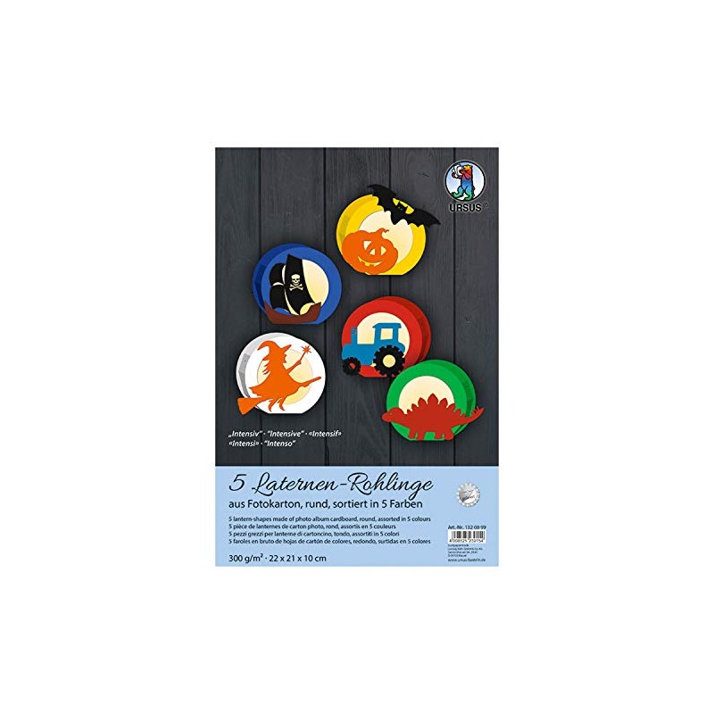 Ursus 1320099 Lantern Blanks Round Approx. 22 x 21 x 10 cm 5 Assorted in 5 Intense Colours Made of Photo Card 300 g/m² Lasered for Making Lanterns Ideal for the Next Lantern Run