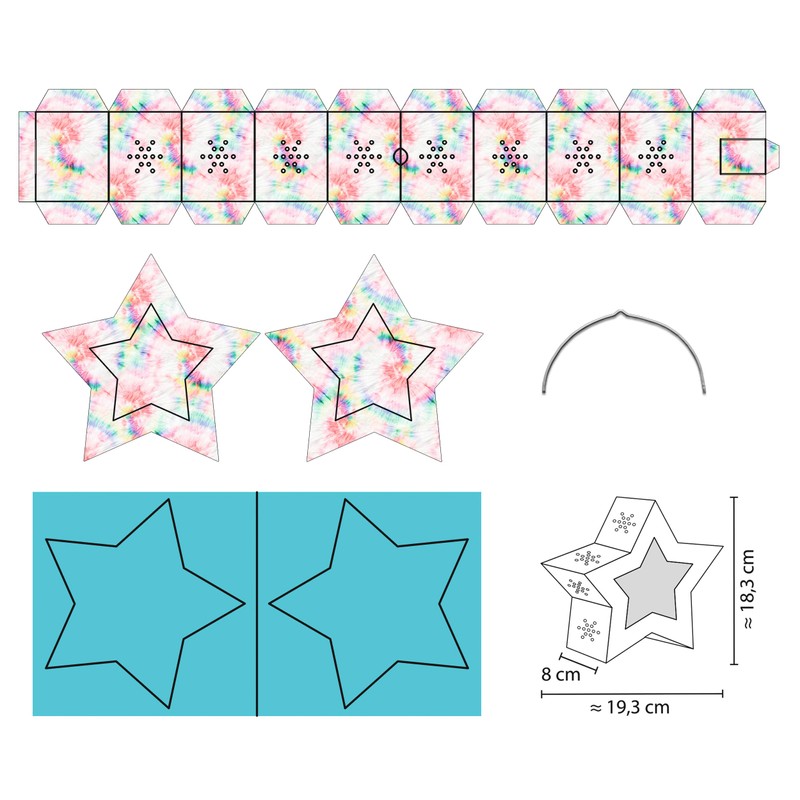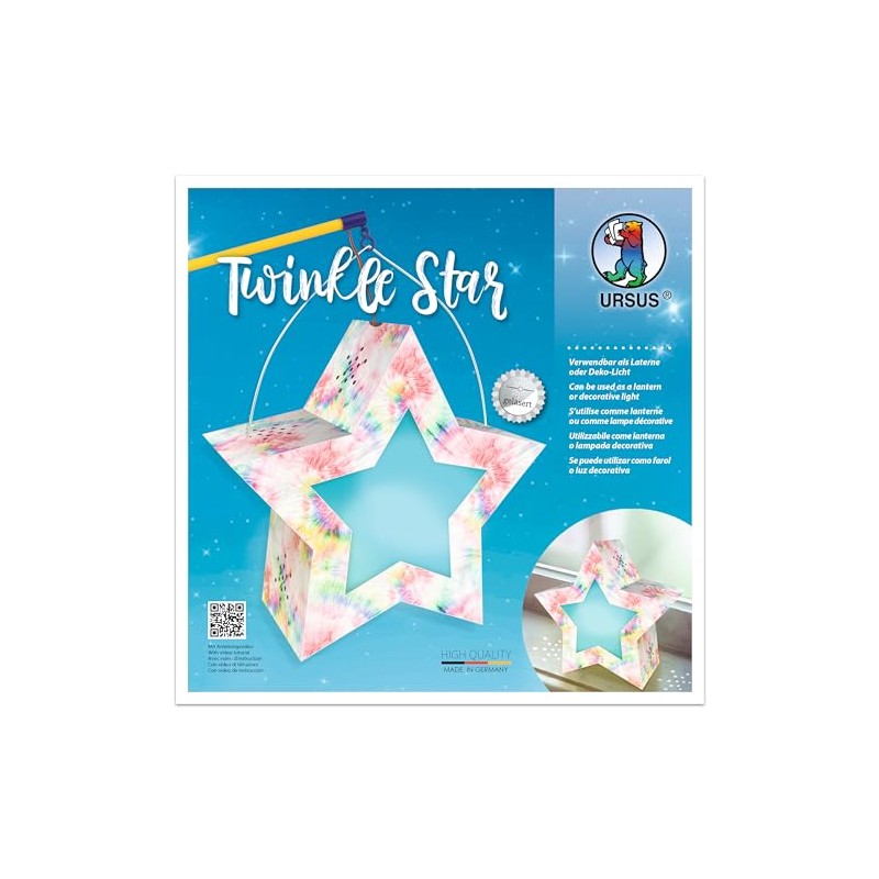 Ursus 18770008 Twinkle Star Rainbow Tie Dye, Complete Set for Making a Star that can be Used as a Lantern or Decorative Light, Includes Instructions (English language not guaranteed), Ideal for