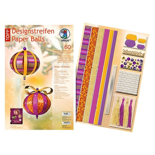 Ursus 23480099 Design Strips Paper Balls Magic Christmas, Material for up to 8 Paper Balls, Diameter Approx. 10 cm, 60 Strips with Accessories, Ideal for Crafting Individual Christmas Baubles