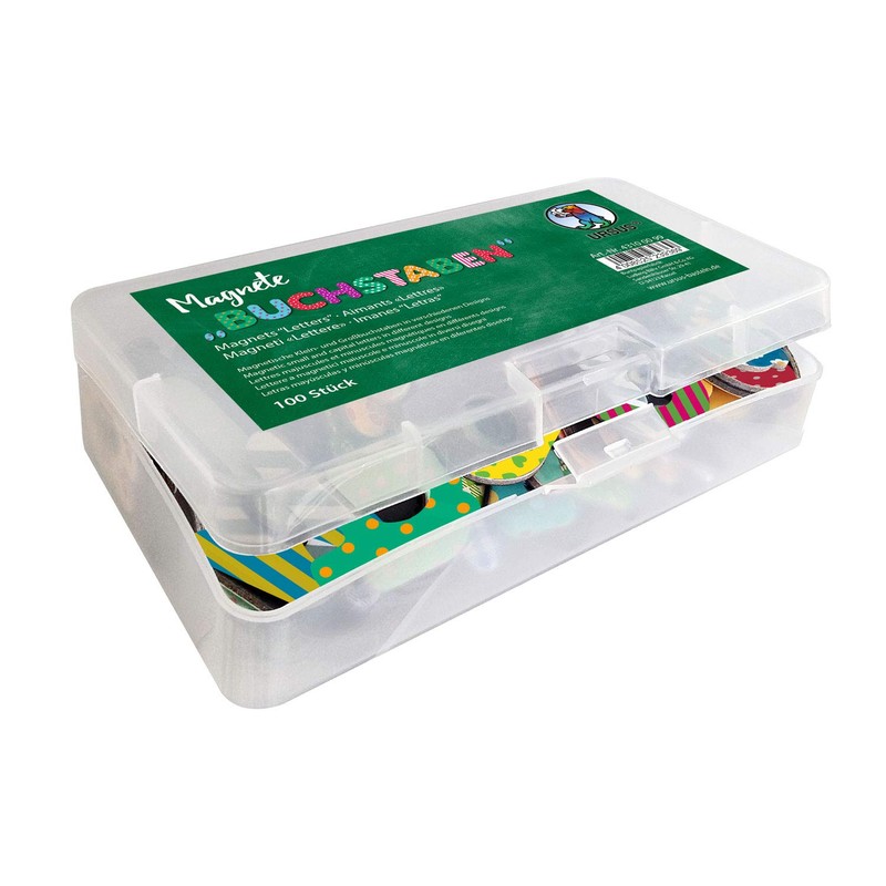 Ursus 43100099 Magnets Letters, Pack of 100 in a Plastic Tin, Various Designs and Sizes from 1.5 - 4.4 cm, with Small and Capital Letters, Ideal as a Gift for School