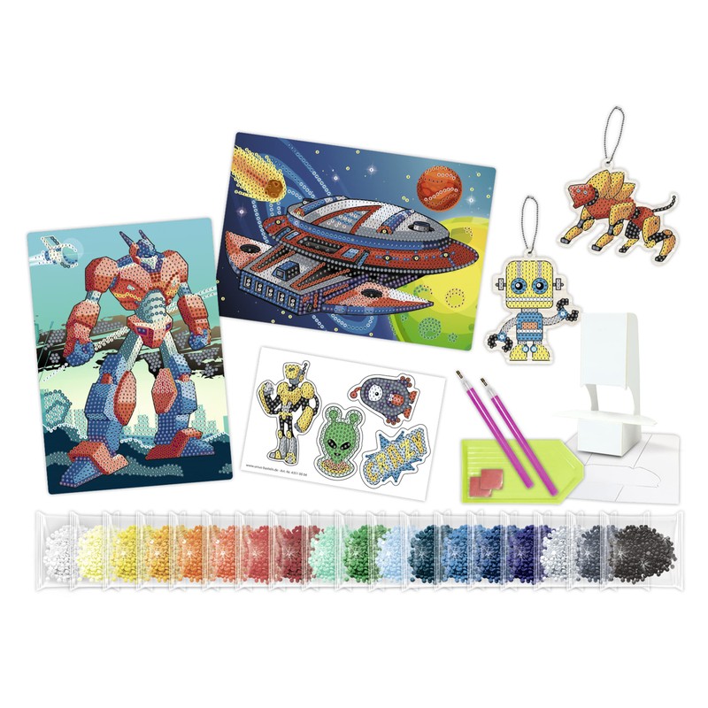 - Creative set for boys for crafting sparkling decorative items with spacy motifs, such as Transformer, Spaceship or Alien