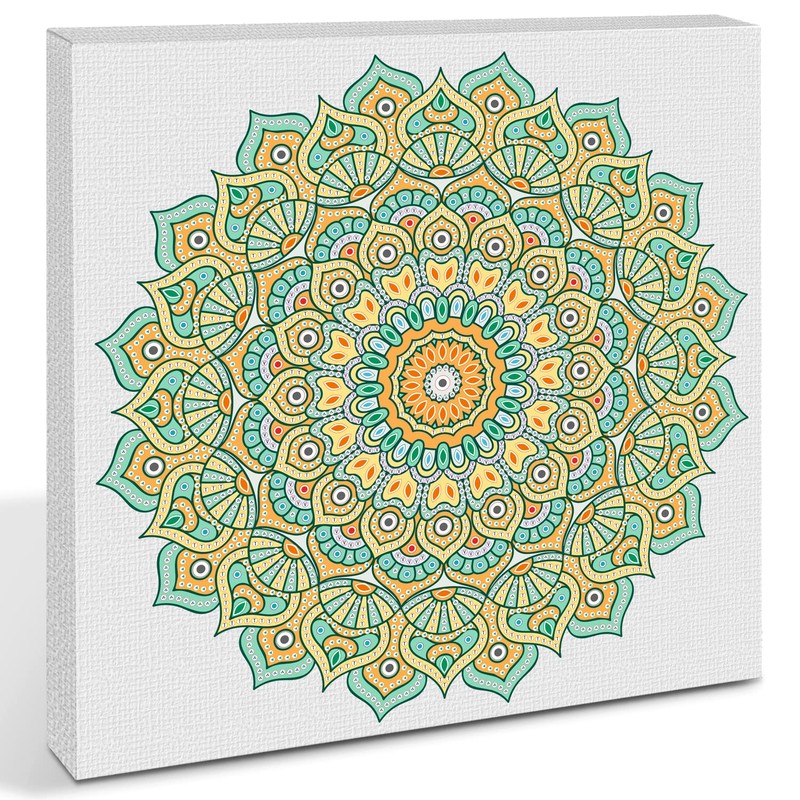 - Contents: a mandala on canvas (30 x 30 x 1.5 cm), a pin with adhesive pad, a tray, tweezers, a mounting kit and various acrylic diamonds