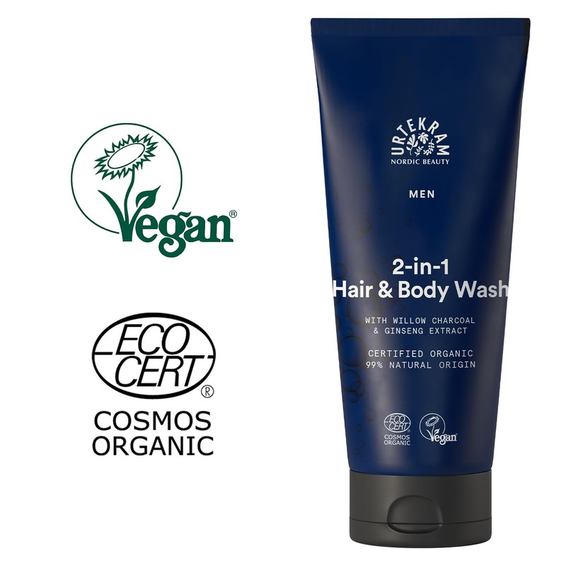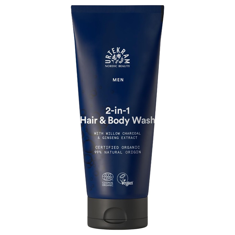 Urtekram - Men's 2-in-1 Hair & Body Soap - With Ginseng Extract & Organic Charcoal - Refreshing & Revitalising - 200 ml - Vegan, Organic, Natural Origin