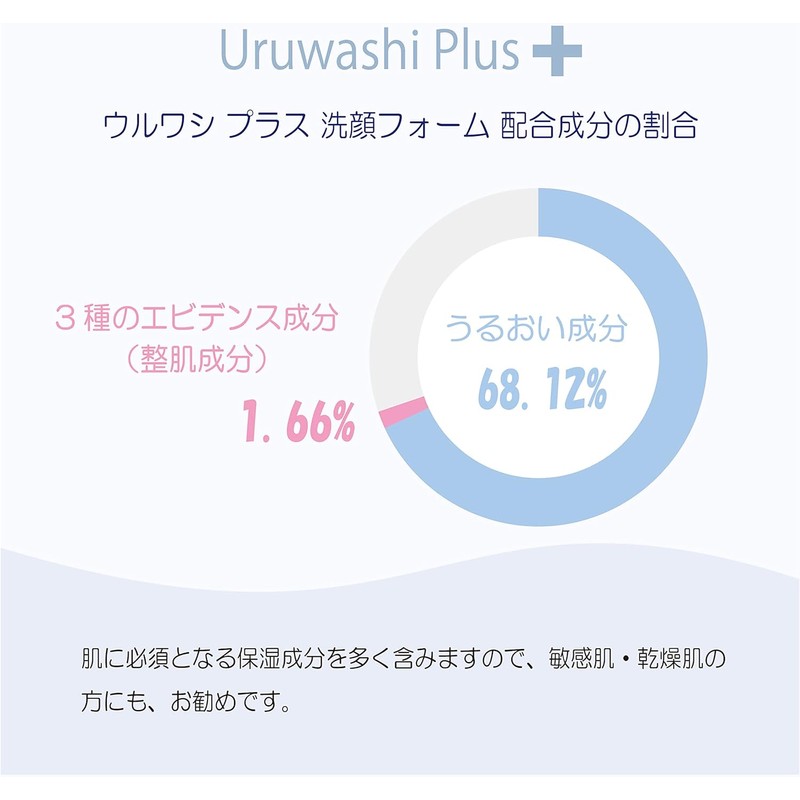 Uruwashi Plus Facial Cleansing Foam, 5.3 fl oz (160 ml), Evidence Supremacy, Highly Moisturizing, Hypoallergenic, Fragrance-free, Moisturizing, Feeling Moisturizing