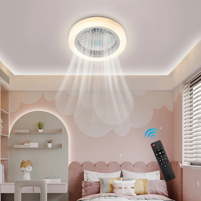 US 18'' Modern Low Profile Ceiling Fan with Lights Remote Bladeless LED 3-Color