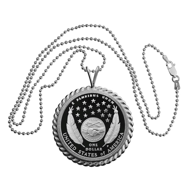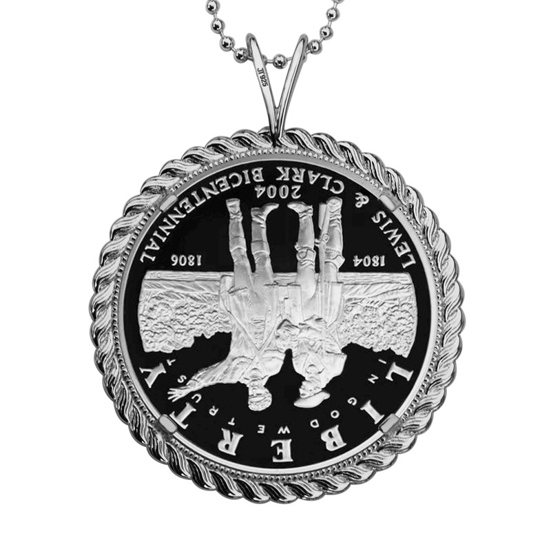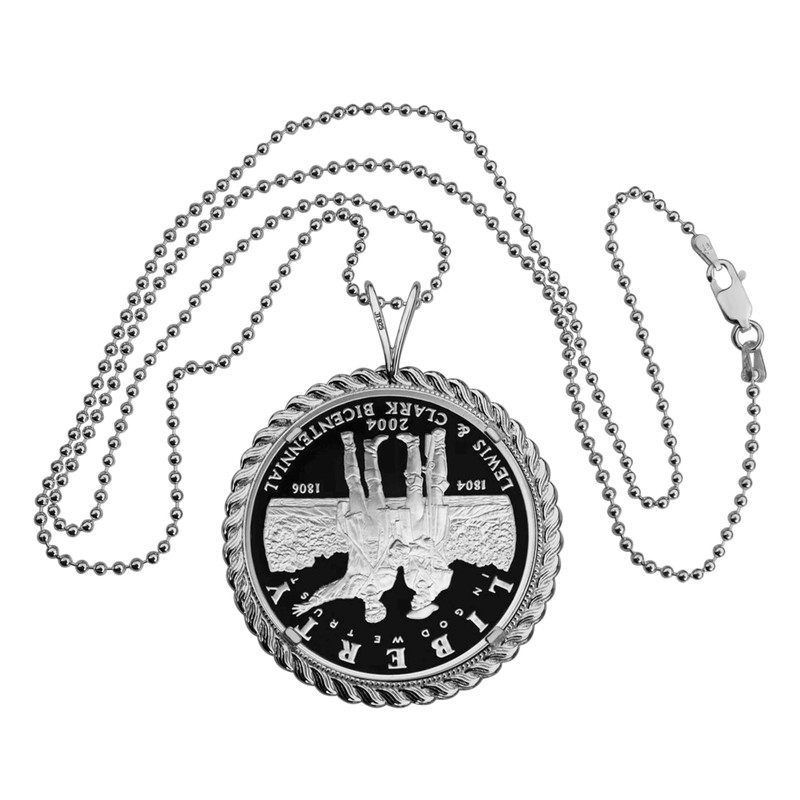 US 2004 Lewis and Clark Commemorative 90% Silver Proof Dollar Coin Solid 925 Sterling Silver Necklace NEW