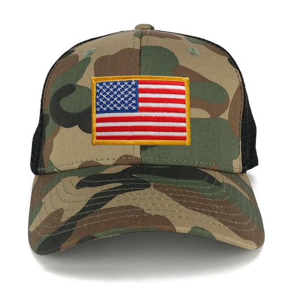 US American Flag Embroidered Iron on Patch Adjustable Camo Trucker Cap - WWB - Yellow