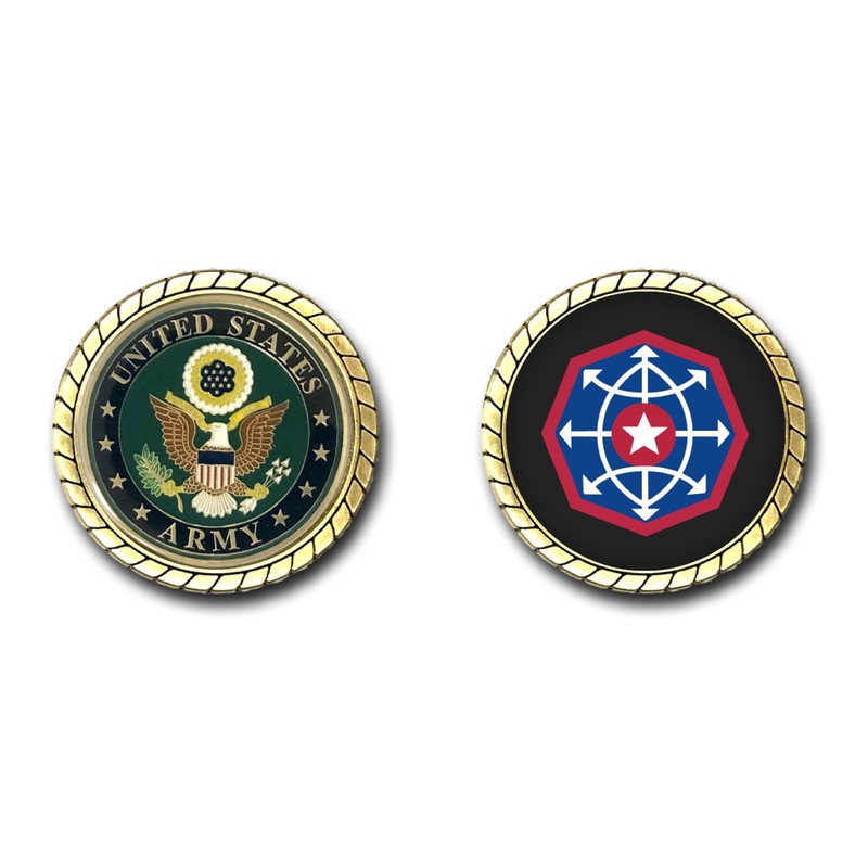 - Please enjoy this beautiful US Army Command Challenge Coin with the US Army insignia on one side and the Command's insignia on the other