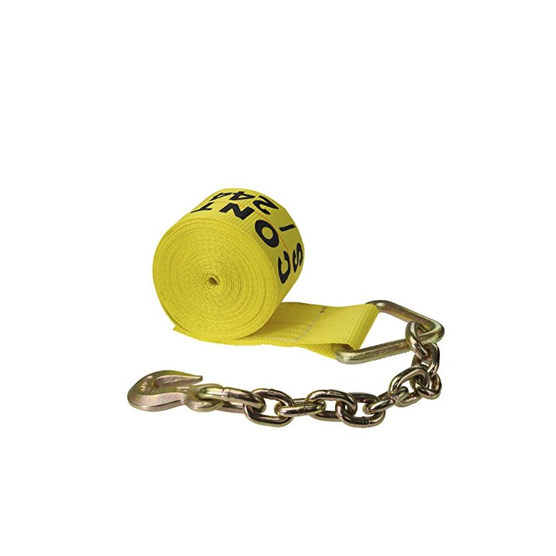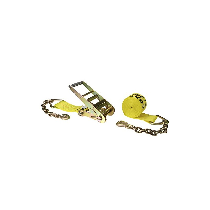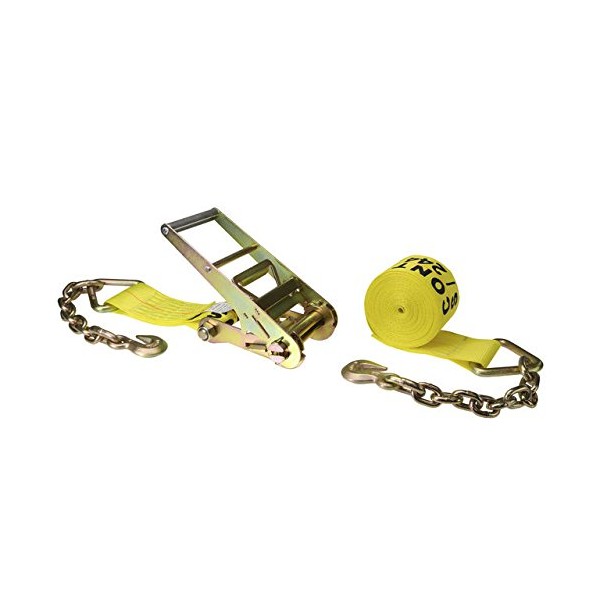US Cargo Control 4 Inch x 30 Foot Yellow Ratchet Strap with Chain Extensions and Clevis Grab Hooks