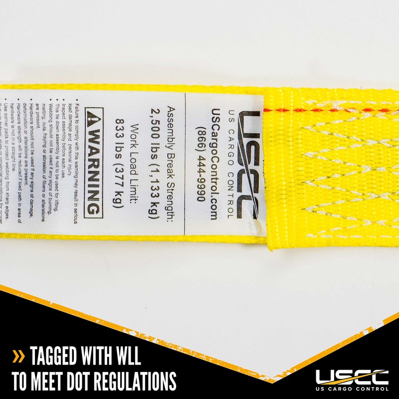- QUICK IDENTIFICATION - US Cargo Control E-Track Cam Straps are clearly labeled with their working load limit and are compliant with US DOT and Commercial Vehicle Safety Alliance (CVSA) guidelines, and meet or exceed Web Sling and Tie Down Association (WSTDA) standards.
