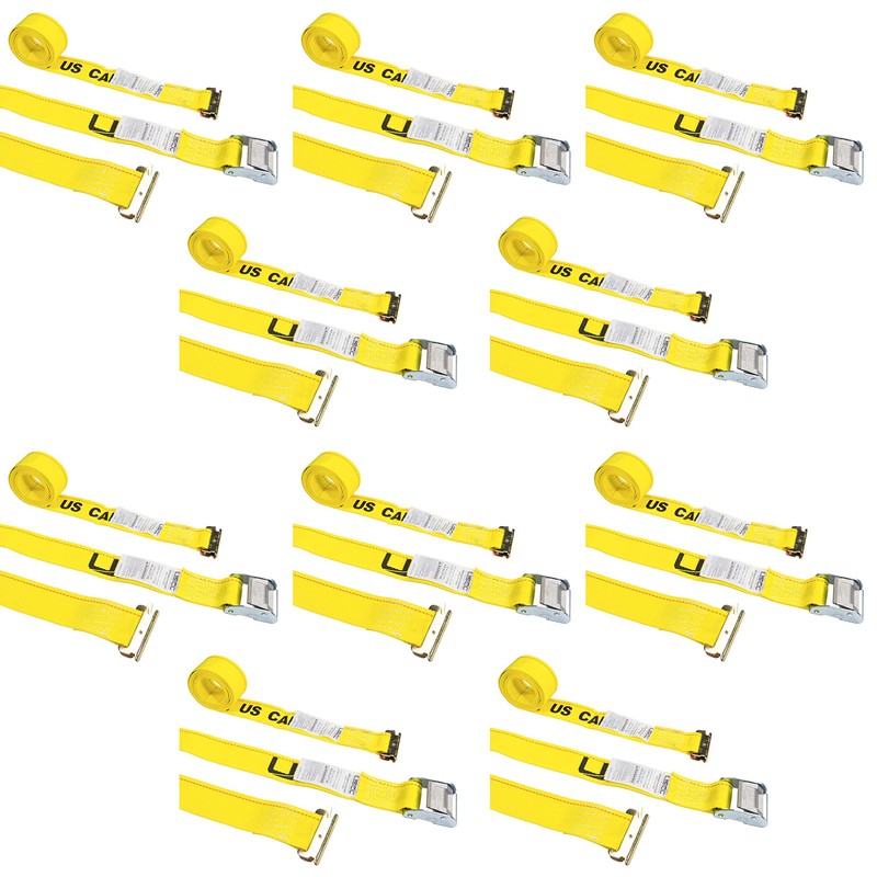 US Cargo Control E-Track Cam Buckle Straps (10-Pack), 2 Inch x 12 Foot Heavy Duty Yellow E-Track Straps with 4 Foot Fixed End and Spring E-Fittings, 833 lbs. Working Load Limit, Logistic Straps