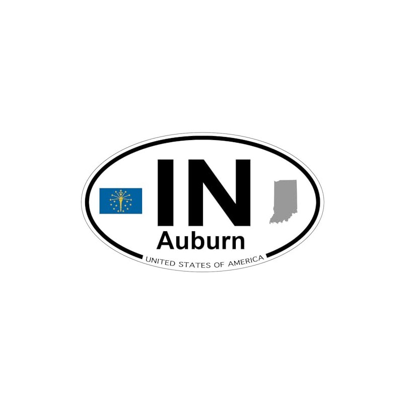 US Decal, Inc. Auburn, Indiana Oval Sticker with State Flag