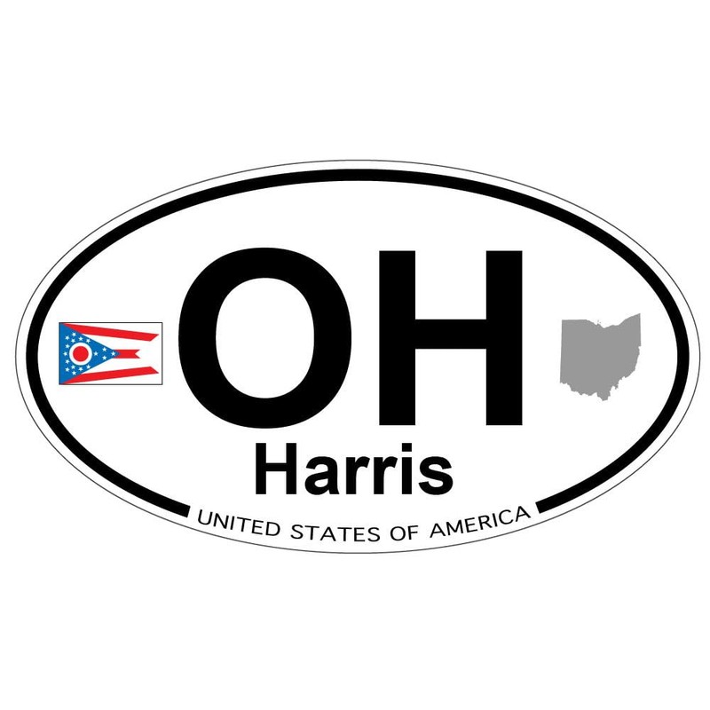US Decal, Inc. Harris, Ohio Oval Sticker with State Flag