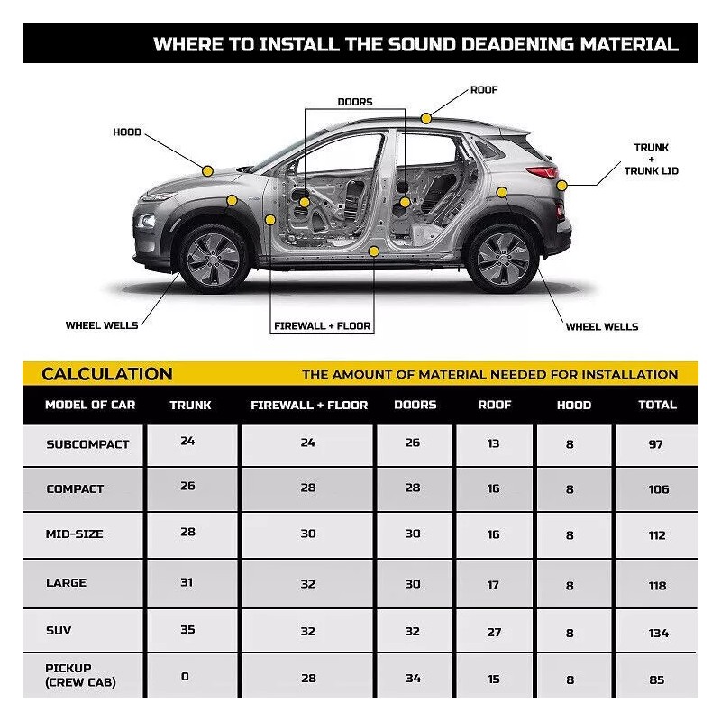 US ENERGY PRODUCTS Sound Deadener Car Insulation Automotive Reduce Heat Shield Self-Adhesive Mat B6