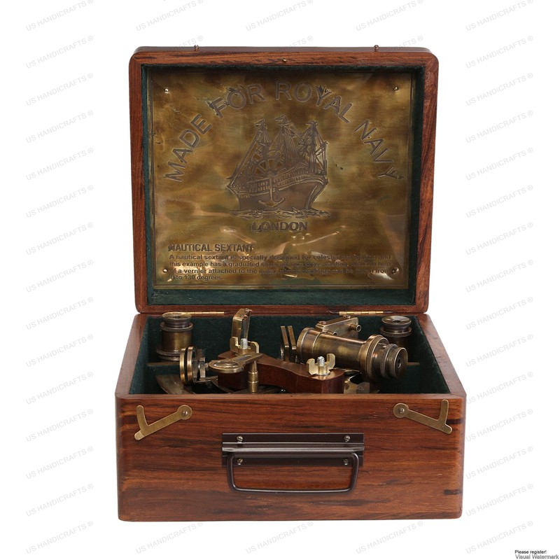 US HANDICRAFTS 8 Inch Maritime Antiques Marine Captain Sextant - Brass Nautical Sextant