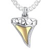 US Jewels 1.5in 925 Sterling Silver & 14K Gold Plated 3D Window to Universe Shark Tooth Pendant 4mm Curb Necklace, 20"