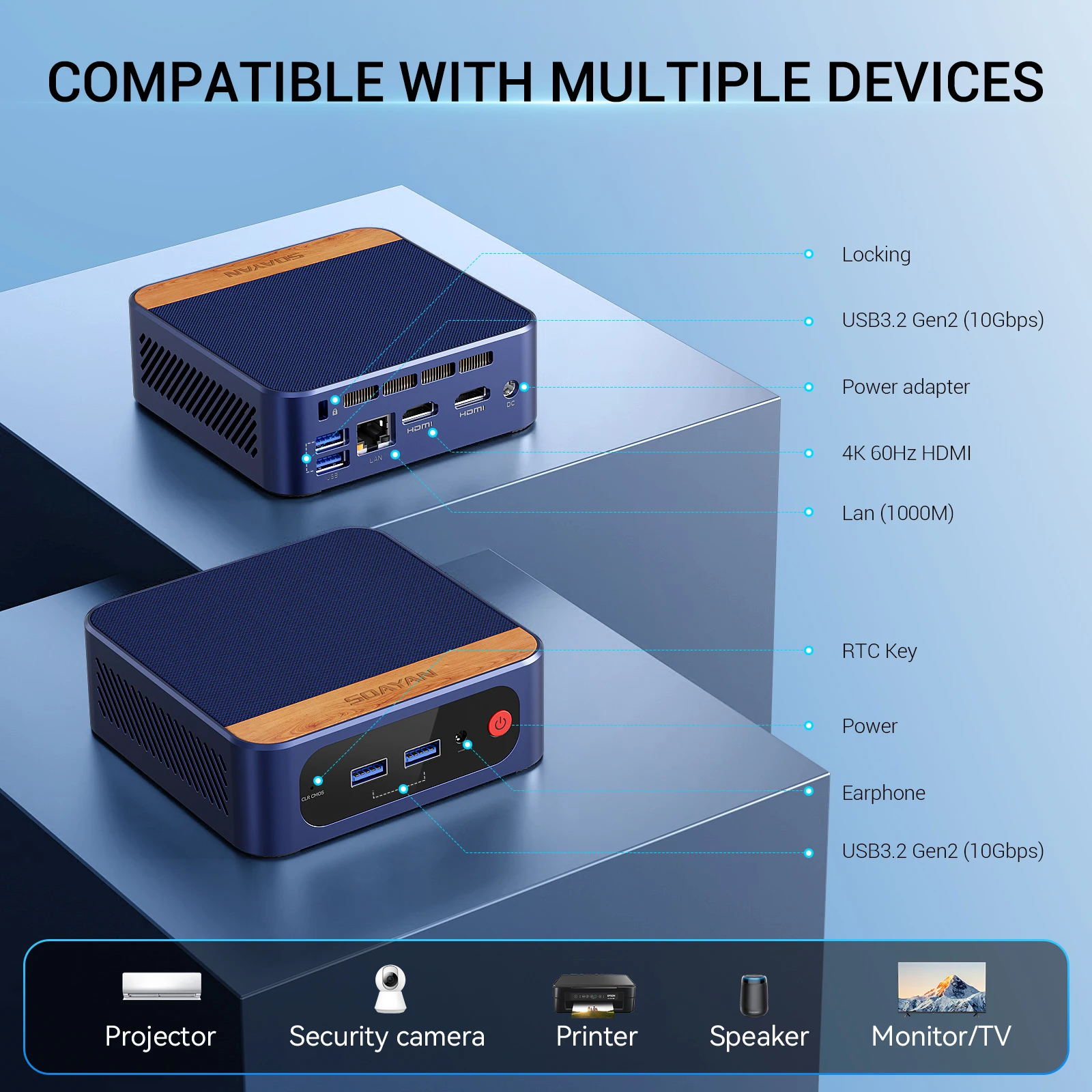 * Most mini PCs offer abundant interfaces, including HD-MI, USB, Type-C, Ethernet, audio ports, etc.