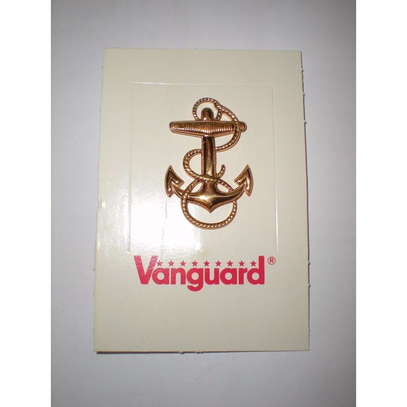 US NAVAL ACADEMY MIDSHIPMAN'S CAP BADGE - MINT ON ORIGINAL CARD. REVERSE VANGUARD MARKED. MEASURES 1.8" TALL. 1 BADGE.