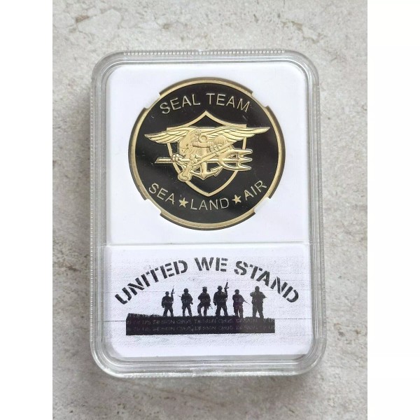 US NAVY SEAL TEAM SEA, LAND, AIR COLORIZED ART ROUND CHALLENGE COIN WITH CASE