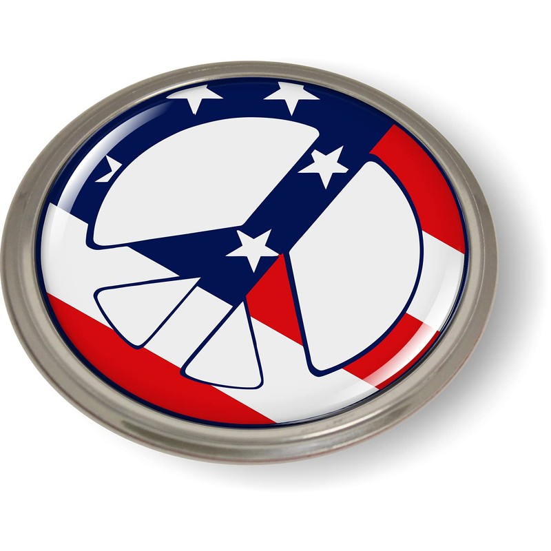 US Peace American Flag 3D Domed CAR Emblem Badge Sticker Semi-Flexible Aluminum Round Bezel