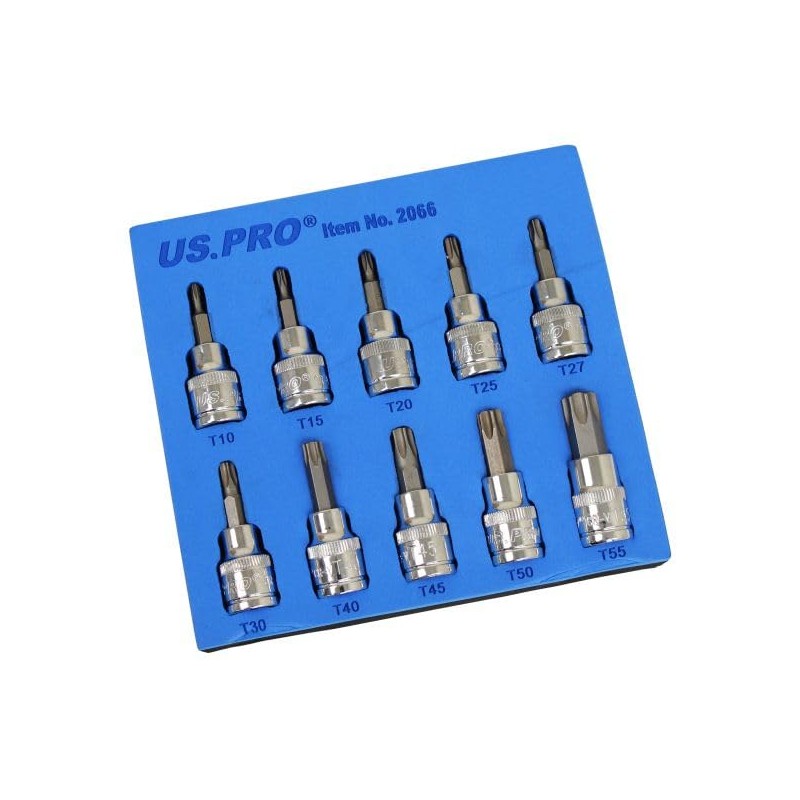 US PRO 10Pc 3/8 Drive 48mm Long S2 Torx Socket Set T10 - T55 B2066
