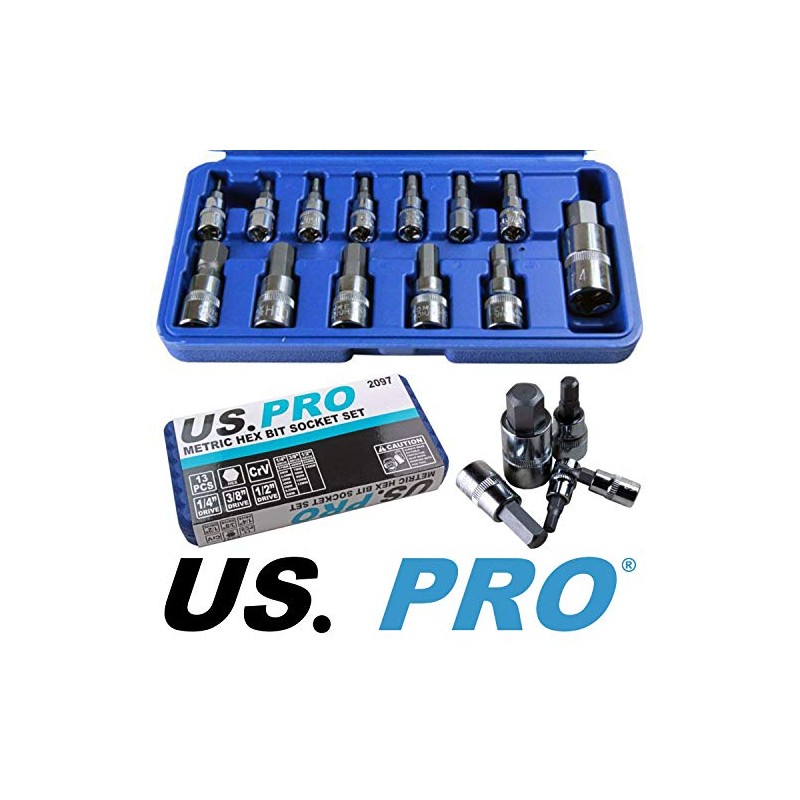 US Pro 2097 Bergen Trade Quality 13 pc Metric Hex Bit Socket Set 2 to 14mm in Case