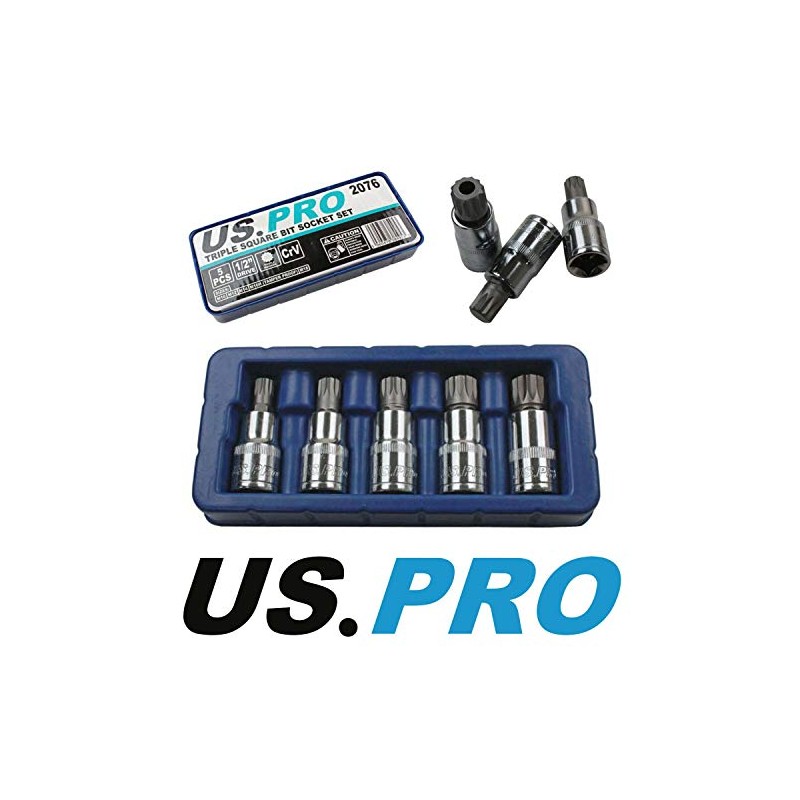 US PRO 5 Piece 1/2" Drive Spline Triple Square Bit Sockets M10 - M18 2076