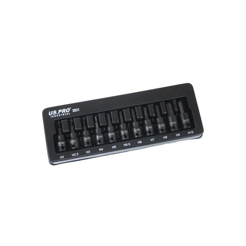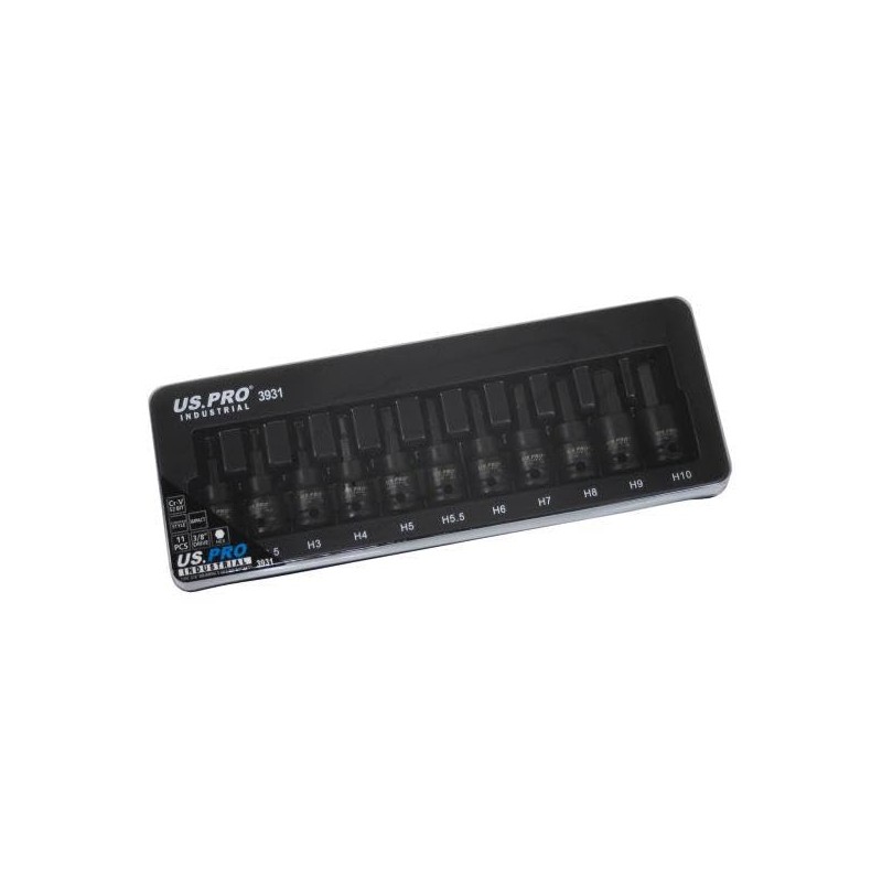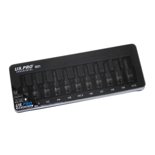US PRO INDUSTRIAL 11 x 3/8" DR Impact Hex Bits Sockets H2 to H10 S2 Steel 3931