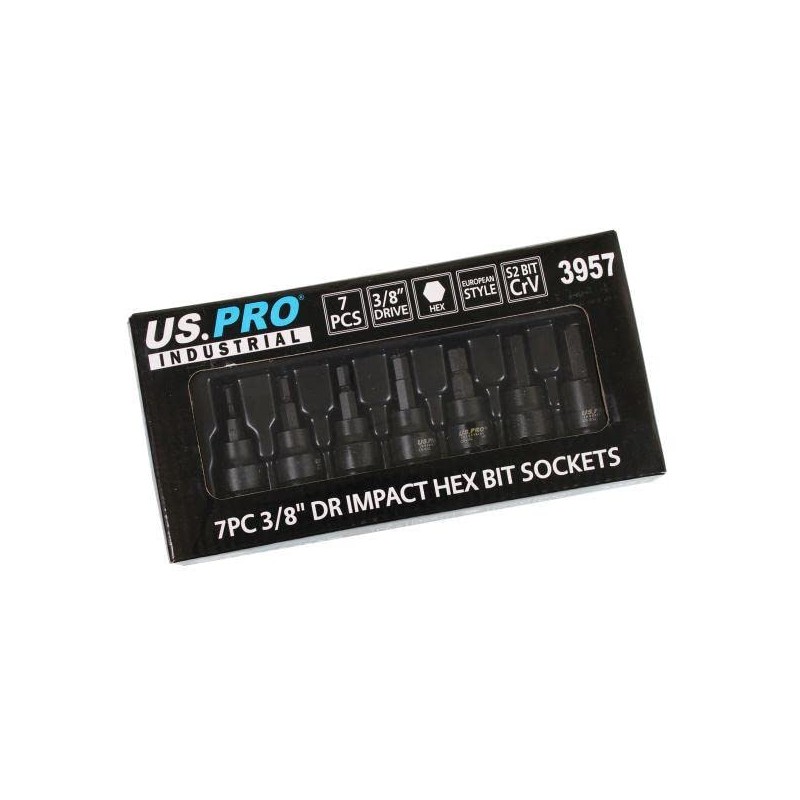 US PRO INDUSTRIAL 7PC 3/8" DR Impact Hex Bit Socket Set H3 - H10 3957