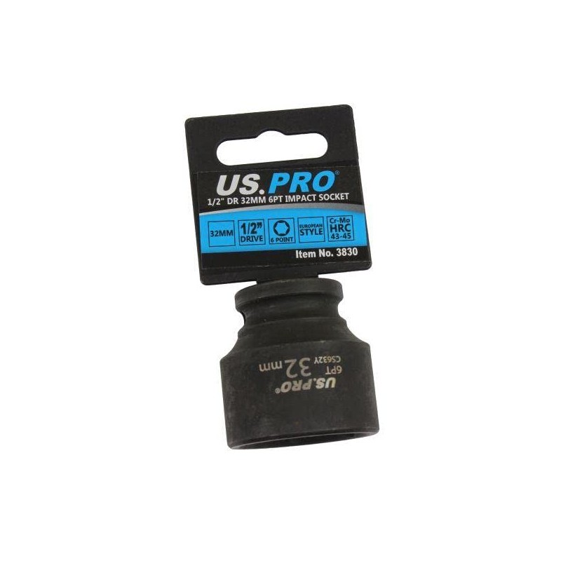 US PRO Tools 32mm Impact Socket 1/2" Drive 6 Point Single Hex Shallow 3830