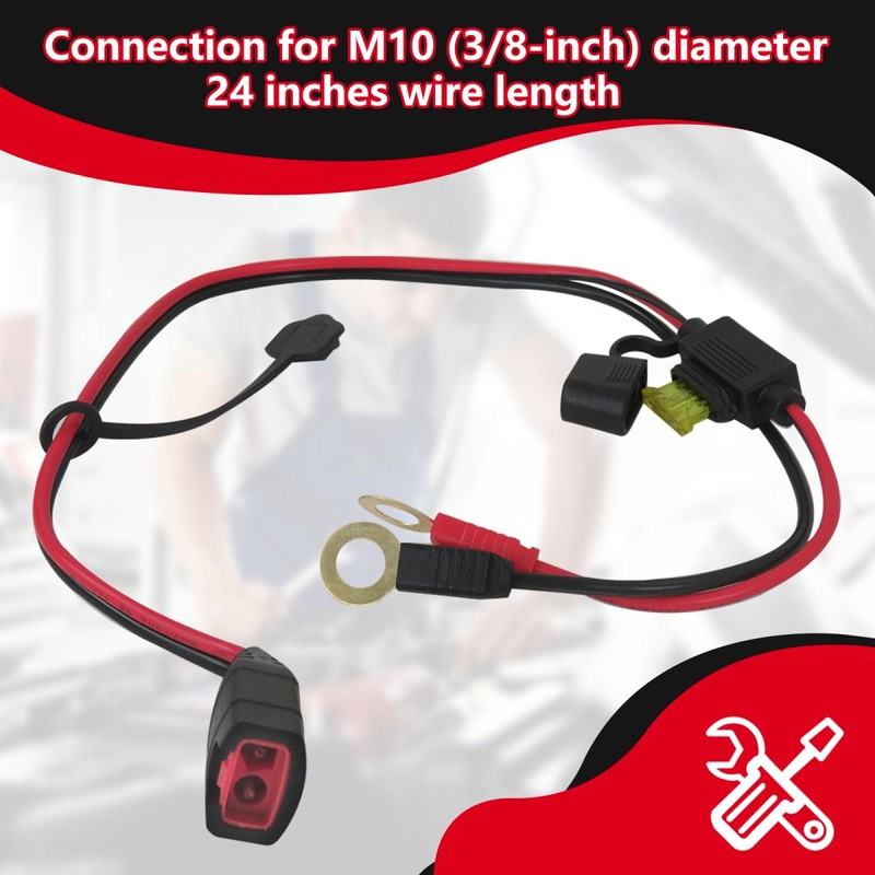 - 【Easy Installation】Effortlessly install this M10 Wire Harness to your smart battery chargers. The lie-flat design ensures seamless mounting to any battery, providing a secure and permanent connection for enhanced convenience and safety