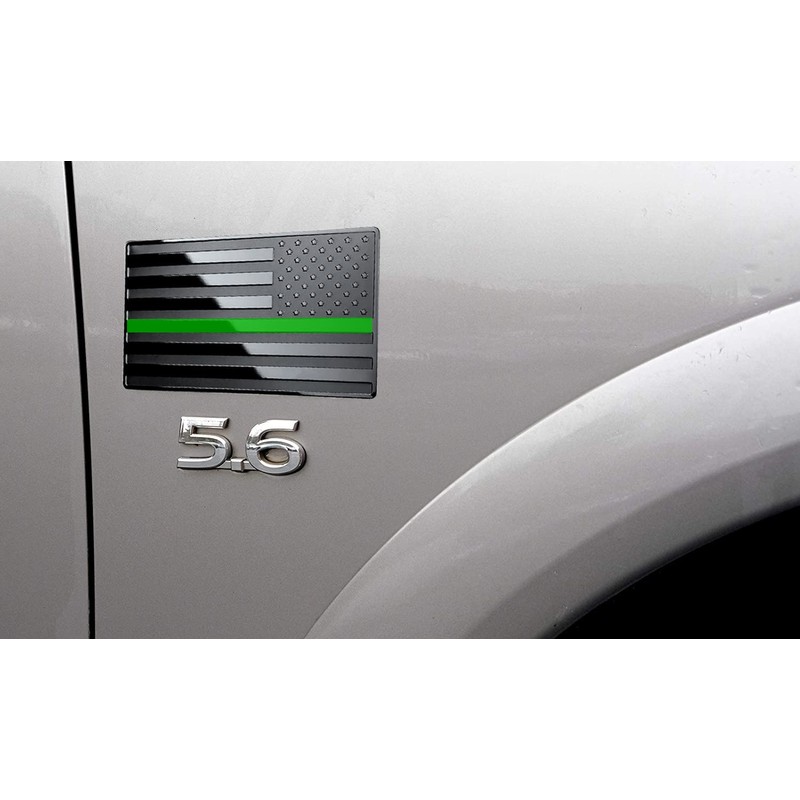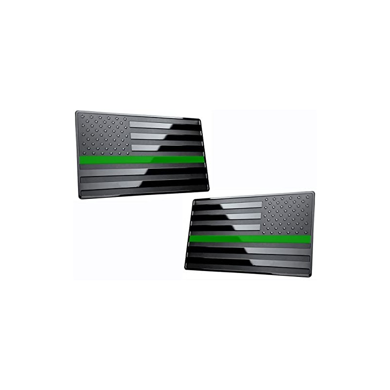 USA American Black Flag Metal Auto Emblem Miltary Support for Cars Trucks 2pcs Forward and Reverse Set (5"x3", Green Line)