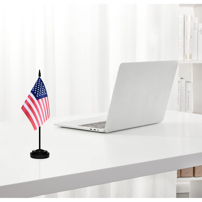 USA Desk Flag Set, 2 Pack American US Table Office Flags, Small Mini Desktop Flag With 12" Solid Black Pole, Black Base, Miniature Desktop Flag