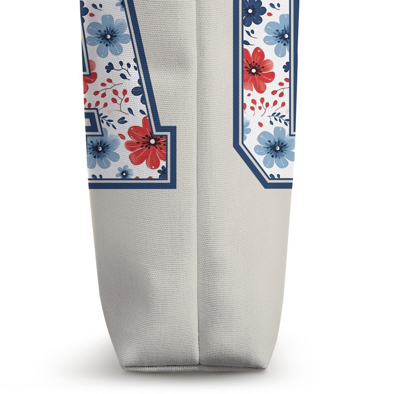 USA Est 1776 Varsity Mama July 4th Floral Semiquincentennial Tote Bag
