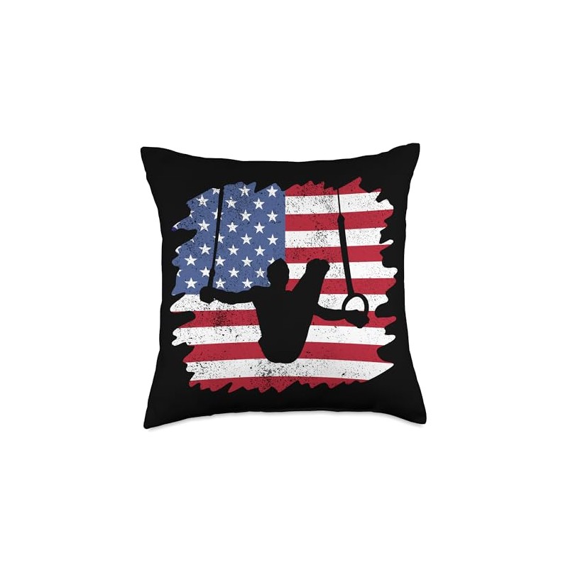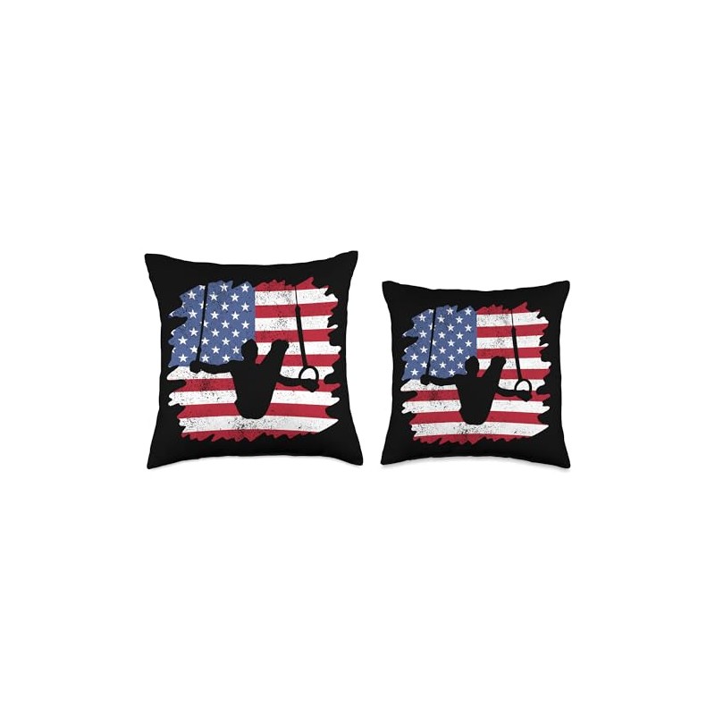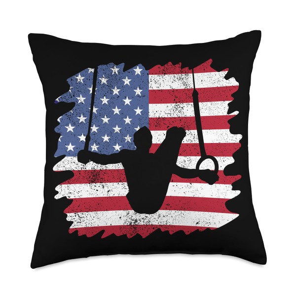 USA Flag Gymnastics Rings I American Rings Gymnast Throw Pillow