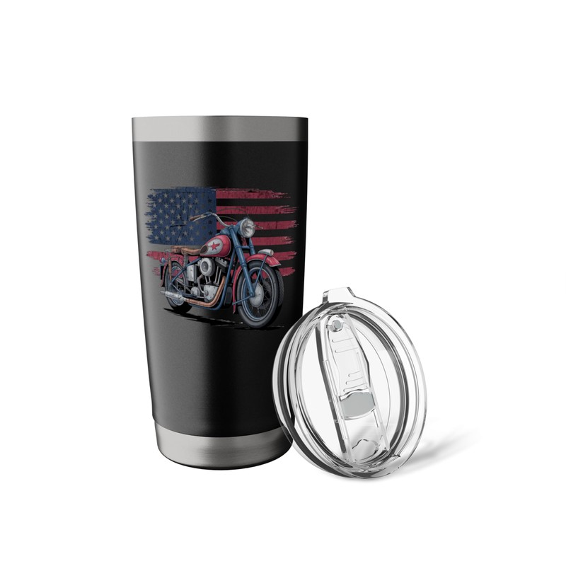 USA Flag Motorcycle Retro Biker Stainless Steel Insulated Tumbler