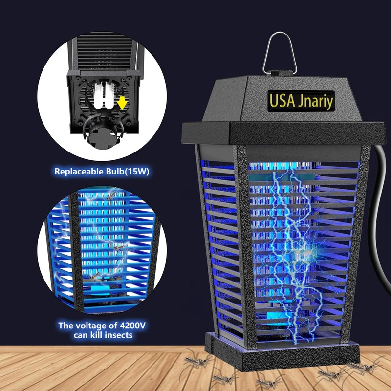 USA Jnariy Bug Zapper Outdoor, Fly Zappers Indoor Electric, Mosquito Zapper, Fly Insect Killer, Mosquito Killer, Mosquito Killer, 3 Prong Plug with 5ft Power Cord Trap Lantern