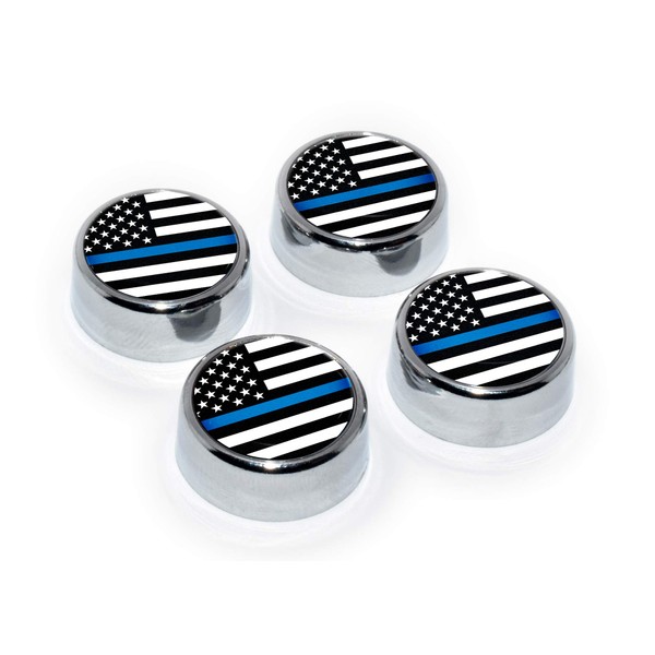 - Police Thin Blue Line Flag Screw Caps - 4 pack