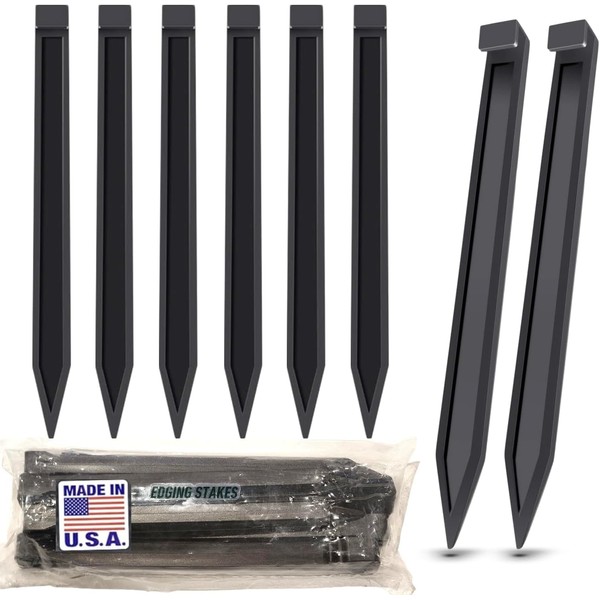 INSTALLATION: Designed for installation with a rubber mallet or by hand based on soil density. PROFESSIONAL QUALITY: Proudly Made In The USA! - From durable UV resistant materials! PROFESSIONAL QUALITY: Proudly Made In The USA! - From durable UV resistant materials! Multi Purpose Application: Landscape Edging, Weed Fabric, Tent Pegs, Secure Yard Decorations & More.
