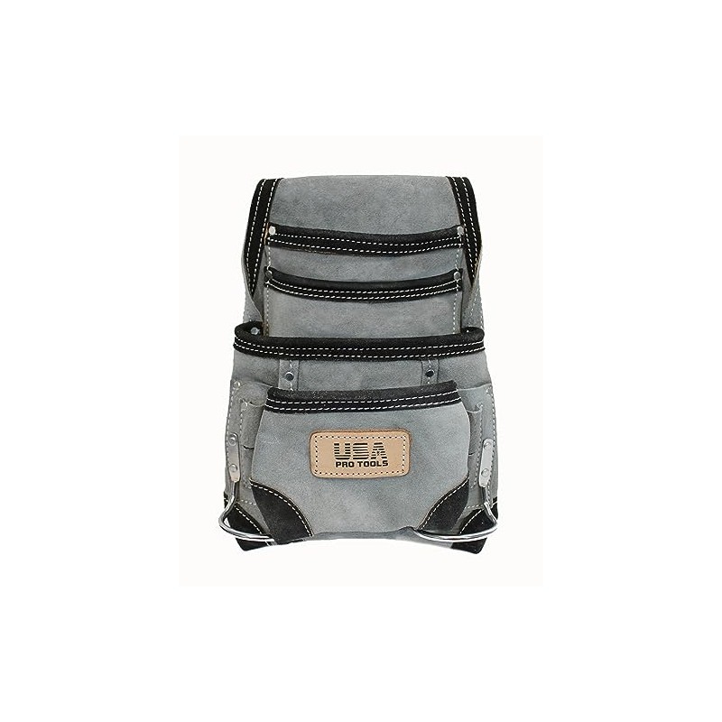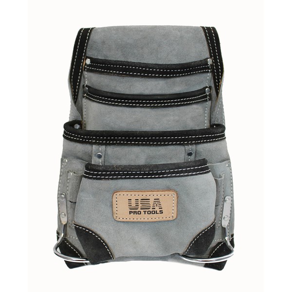 USA Pro Tools Suede Tool Pouch | 10 Pocket Leather Tool Pouch | Carpenters Nail & Tool Pouch Bag (Grey)
