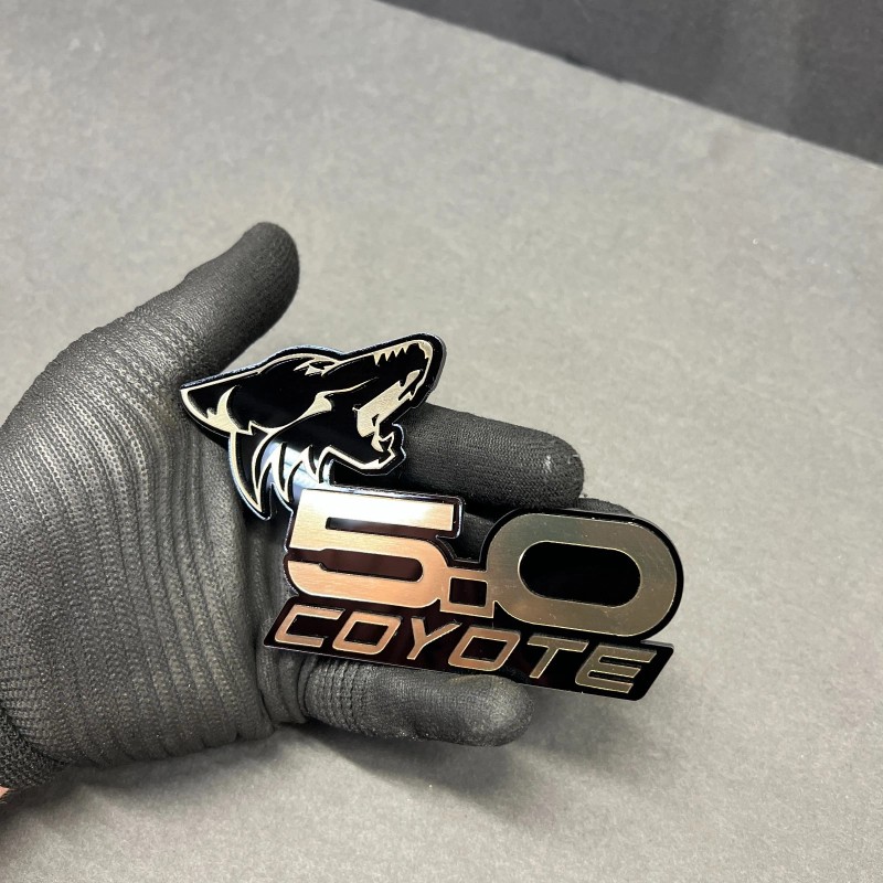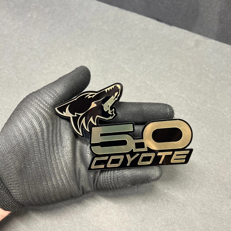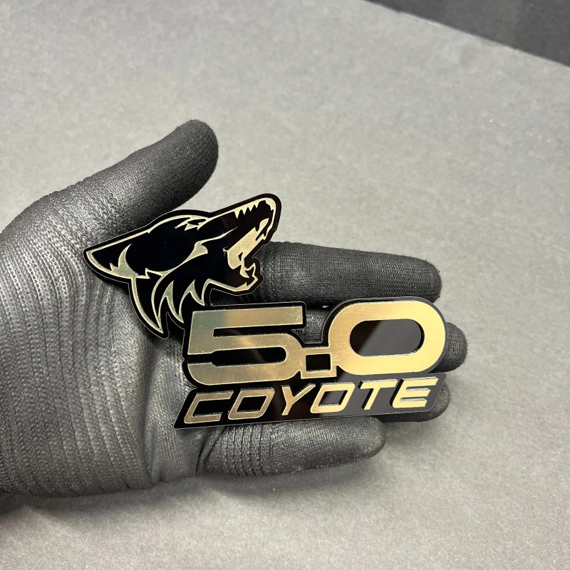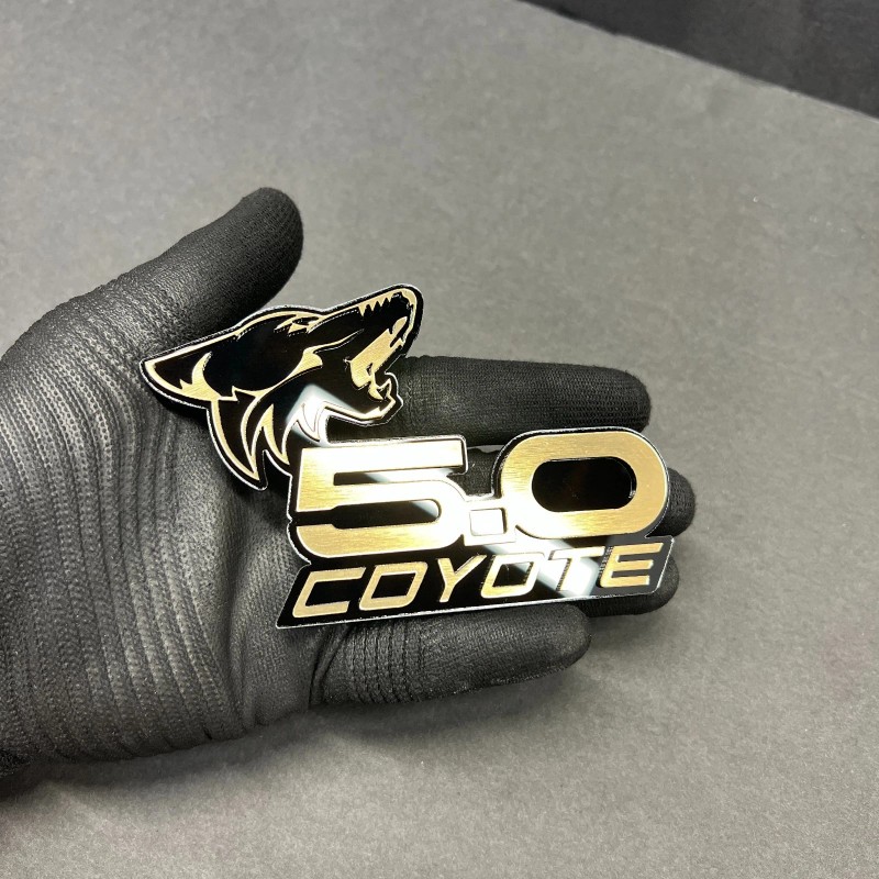 usa Standard COYOTE 5.0 Emblem Badges GOLD On BLACK EDITION Fender Angry Aggressive Racing