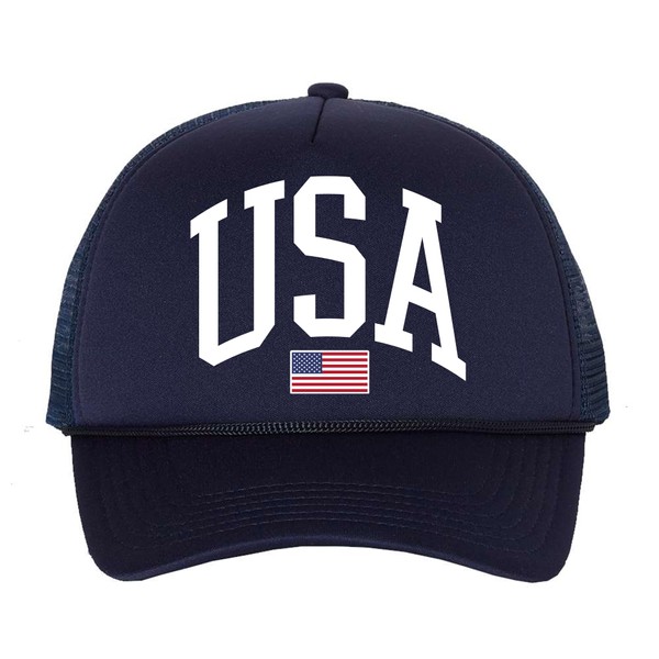 USA1 Trucker Hat with American Flag – Adjustable Mesh Back Baseball Cap – Patriotic Snapback for Men & Women – Black Casual Outdoor Hat - Navy