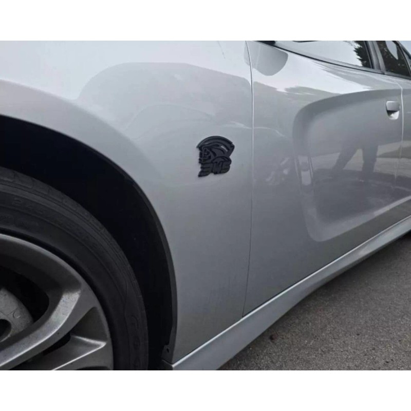 UsaStandard Red Eye Reaper Car Truck Emblem Badge Matte Black on Black Custom Set of 2