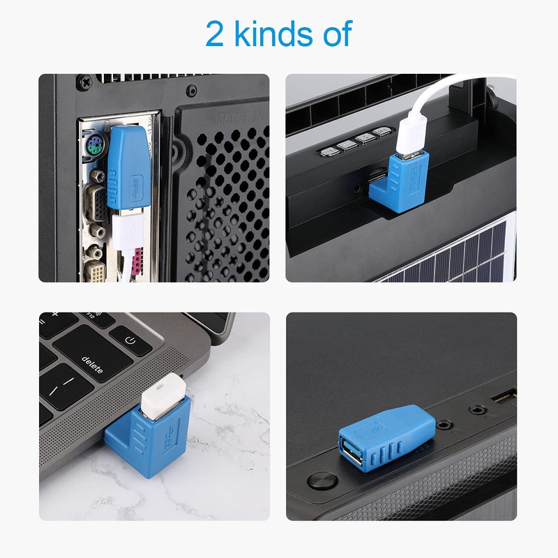 • 4 Packs USB Male to Female - 2 directions. Used for changing usb port direction. Best solution for cable connection in narrow places, prevent cable bending. It also protect the original usb port of your devices as well