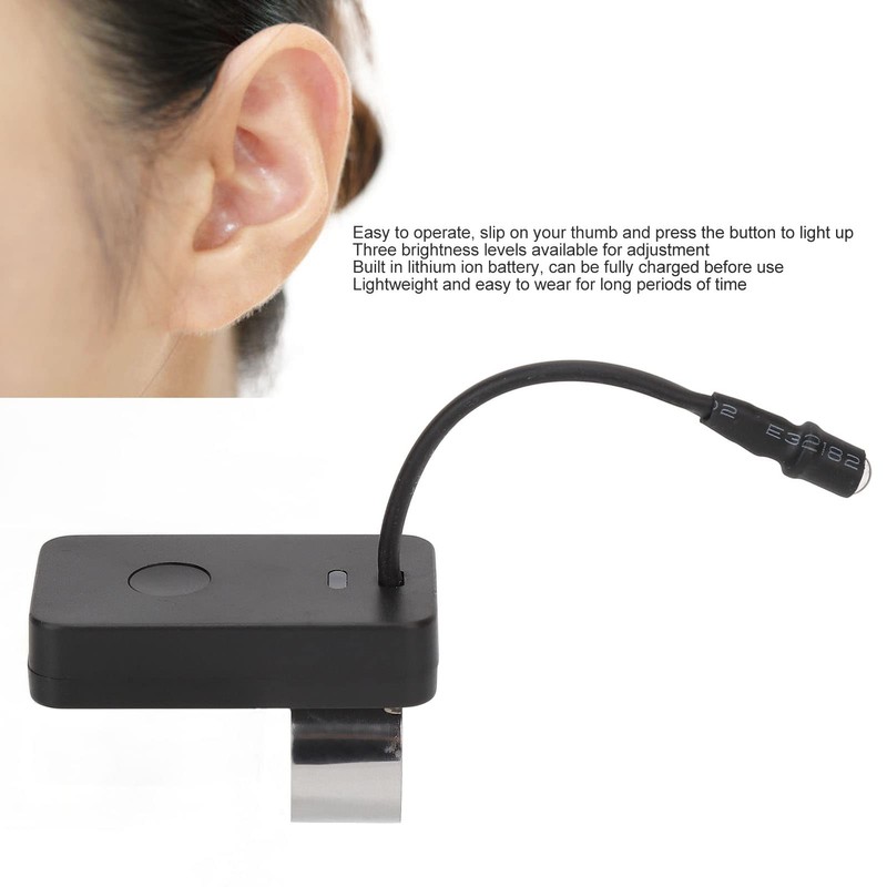 イヤーワックスリムーバー用ランプ、サムウェアラブルUSB充電耳掘りランプイヤークリーナーライト、耳掃除用、3ギアイヤーピックサムライト(黒)